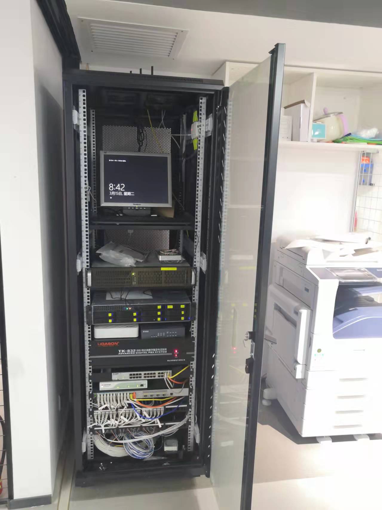 陪伴SYSTO思托贸易走过15载,对上一次搭建机房已经有十年了,借助我们的IT技术及服务,再走十年都是轻易而举!十年前配百兆交换机,普通企业路由,现在升级到千兆三层交换机+进口硬件防火墙;原来有两台1u服务器,现在合并成1台2u服务器(取其中一台1u服务器的核心部件),实现全公司的应用服务:AD域控,文件服务,Web应用,数据库服务,刷卡打印服务。技术的不断迭代,使得IT资产变得更轻量化,资源利用率及管理效率都大大提升。